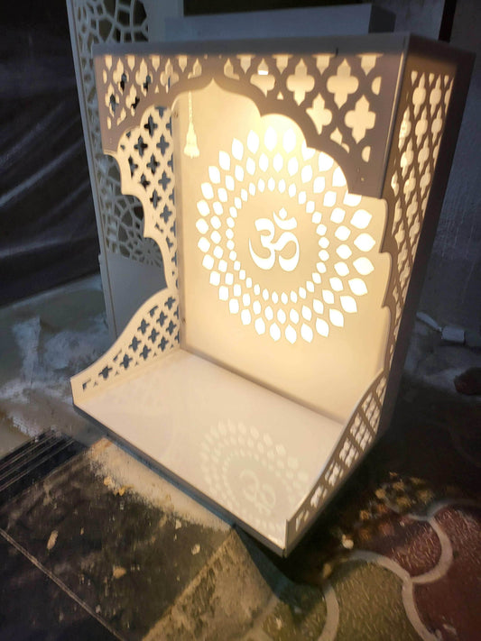 Acrylic Mandir for home with backlit pillars (wallmount Pooja mandir acrylic on backlit design)