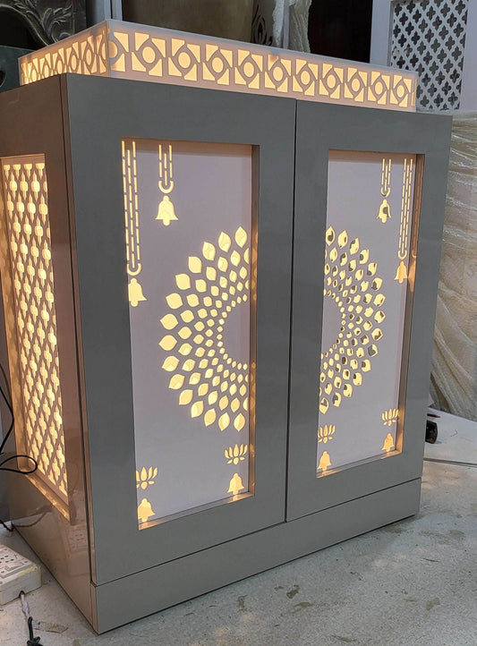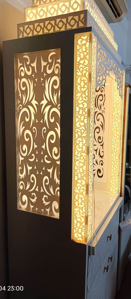 Acrylic Mandir compact with backlit pillars