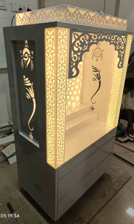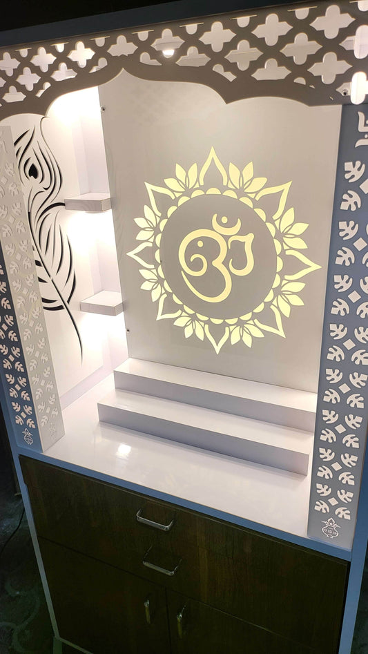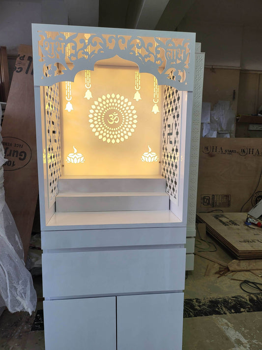 Acrylic Mandir for Home ( white elegant handleless design)