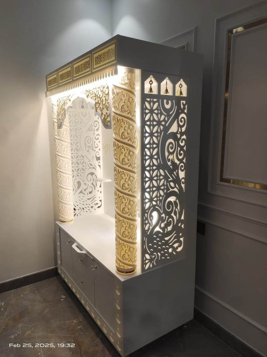 Step into a world of serene elegance with the Corian Temple Collection by Satguru Creations. Each mandir in our collection is a masterpiece of spiritual art, meticulously crafted to be the divine centerpiece of your modern home.