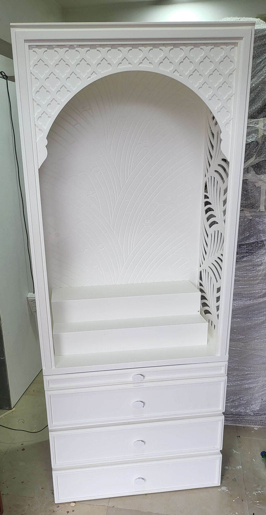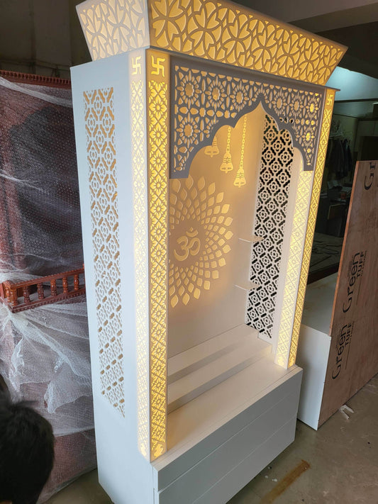 Corian Mandir design for home Banaleaf leaf jaali pattern